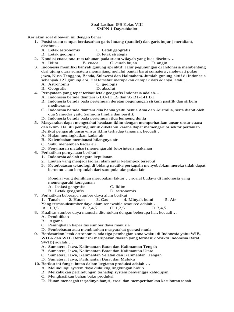 Dengan persiapan yang matang dan pemahaman yang mendalam terhadap contoh-contoh soal seperti di atas, siswa diharapkan dapat menghadapi ulangan atau ujian IPS Kelas 8 dengan lebih percaya diri dan meraih hasil yang memuaskan. Teruslah belajar dan eksplorasi kekayaan pengetahuan IPS!