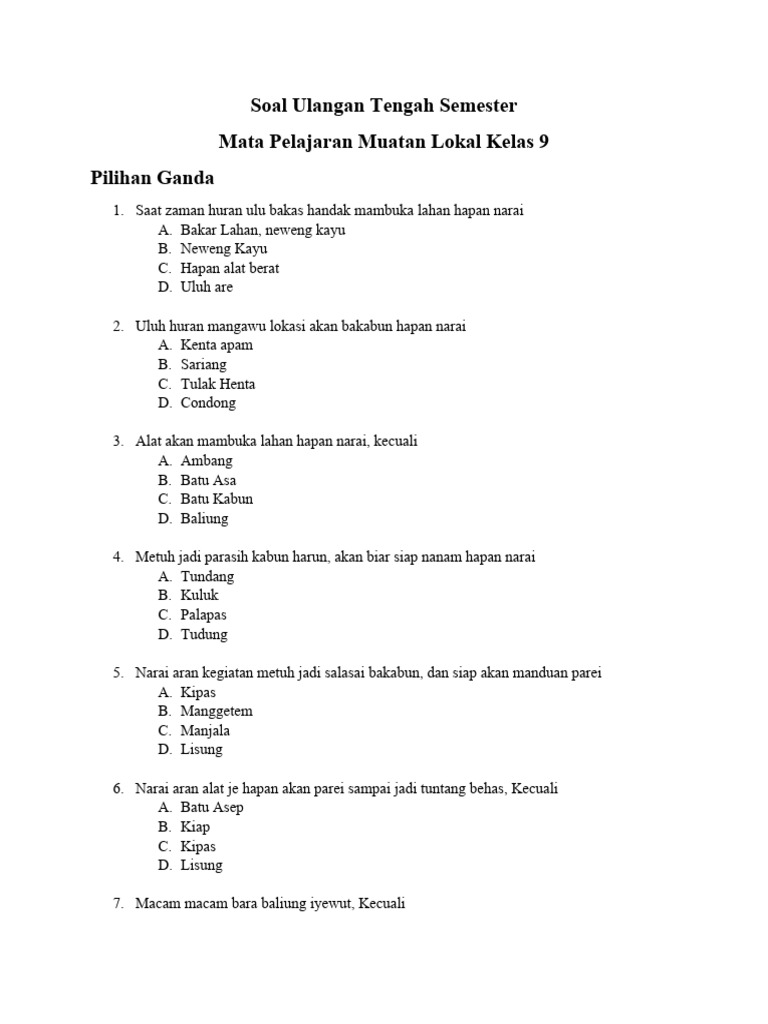- Contoh bentuk soal: Pilihan ganda, isian singkat, atau soal cerita yang melibatkan perhitungan.
